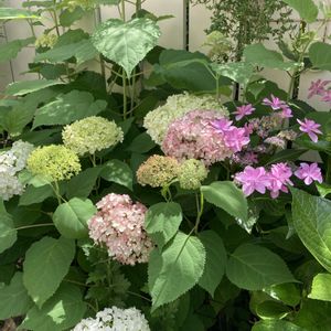 裏庭の紫陽花♡ 1⃣アナベルたちと柏葉 右にはヤマアジサイ ここにはピンクのアナベルもあるが絶不調😂 2⃣アナベル🤍 3⃣ピコティシャルマン🩷 4⃣ルビーのアナベル❤ 5⃣一重の柏葉アジサイ 藍姫、城ヶ崎、星の雫