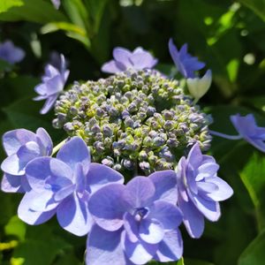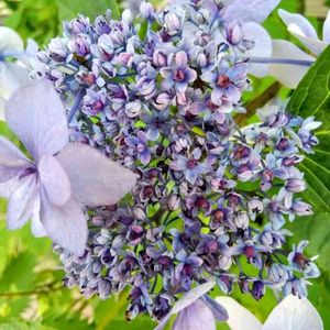 【額紫陽花】《ユキノシタ科》 花言葉は「謙虚」 💜八重の萼が可愛い💕💜 ガクアジサイの花は中央にある小さな粒粒したもの、その縁に花びらのような萼が取り囲んでいるため、額縁のようなアジサイとして、いつしか「ガクアジサイ」と呼ばれるようになりました。 2021.6.12