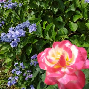 我が家の薔薇ダブルデライトと紫陽花城ヶ崎のコラボ💞🥰