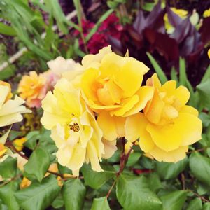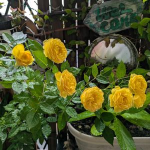 おはようございます😊 今朝は、雨です。 九州南部は、 梅雨入りしたらしい。 早っ😆 黄色薔薇さん達 頭が、重く斜めに なりました。 只今、満開です。