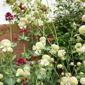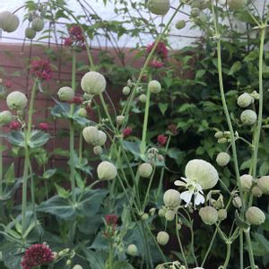 バラのオベリスクに寄りかかって高く咲いたシレネもなかなかかわいい。