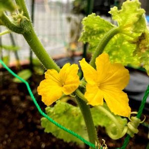 背丈が伸びなかったキュウリも何とか開花☆ なんとか実がつきますように( •̀ .̫ •́ )✨
