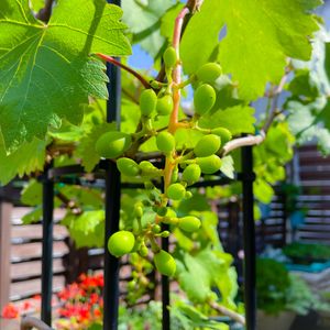 この葡萄は、ちょうど一年前に 市民花壇の花の入れ替えで、 捨てられていた苗を、許可を得て 持ち帰り育てました。 モッコウバラの反対側で 蔓を伸ばしています。 毎朝見上げると、グリーンの日差しが キラキラしています。 虫や鳥たちに、狙われないように しなくちゃ!! 🏷ふぞろいの果実たち