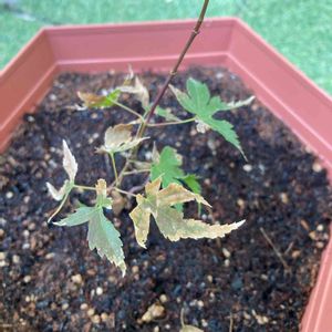 私の里帰り中、旦那に任せていた紅葉さん。 「ついうっかり3日ほど水やりを忘れてた〜😅」と連絡があった時には既にこうなっていたそうな… せっかく小さな新葉が出てきてたのに😭😭😭 私が帰ってきてからは土の表面が乾いてから水やり、毎朝夕の葉水を欠かさない様に頑張ってますが… 復活してね〜大事な大事な紅葉さん🥺