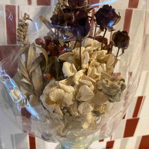 テーブル用にと思い、近所のオシャレなお花屋さんへブーケを買いに行きました。 その際、2歳になる長女が選んだのがこちら… シックな色味の紫陽花やバラが素敵なドライフラワーブーケ🥀 お店の人も 「あんたえらい渋いの選んだな〜!センスええわ!」 と笑ってらっしゃいました🤣 ちなみに税込500円と、お値段も素敵で私も気に入り即購入でした🥰❤️