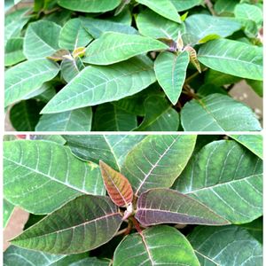今日は、ポインセチアの日🌸という事で、我が家のポインセチア。 上は短日処理始めた10月7日で、下が今日です。 若干の色づき💦 短日処理始めてから、雨の日や☂️、曇の日が多く、余りお日様に当たってないからかな。 今週も雨☂️や曇☁️マークばかり。 秋晴れ🌞🌞、待ち遠しいです。