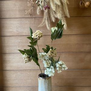 おはようございます☔️ こちらは大雨☔️大風🌪です。 外で写真🤳撮れないので、庭の花で作ったドライフラワー達。 花瓶は、クリスマスローズと、オルレア。 壁に吊り下げてるのは、昨年秋に採ったススキ🌾と、ムラサキシキブ。 お花が終わっても、第2の人生👵🧓 いつまでも楽しませてくれます。 今朝の朝食の目玉焼き🍳。 珍しく双子ちゃんでした🟡🟡 良い事あるかなぁ〜😍 大雨警報が出てる所がある様です。 皆さんお気をつけください。