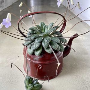 プリムリナ リトルドラゴン (イワタバコ科 プリムリナ属) 最近お花が咲き始めました🌸 セントポーリア スカレプトカーパスの近縁種だそうです。 確かに肉厚な葉っぱはどちらにも似てる。 花の付き方はスカレプトカーパス似🌸 生え方はセントポーリア似🌿 葉挿し 株分け ランナーから小株から😊 4枚目にチョロっと小さいけど子株が飛び出してます🌿 どの植物も ホイホイと簡単に花が咲いてくれたら嬉しいのになぁ〰🤭 頑張ろう💪🎶 見て頂いてありがとうございます🙏🌸🎶