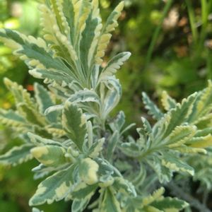 今日の庭から 8日、葉っぱの日なので斑入りの葉っぱを中心にお届けします 1)ラベンダーメルローさんの葉 1年前にお迎えしました。 2)斑入り水引の葉 花友さんから種を分けていただき、増えました🤭 3)牡丹の葉 今年はお花は咲いてくれませんでしたけど、葉っぱだけでも綺麗なので😓 4)五色ドクダミの葉 去年のお盆に岩手の夫の実家から一株いただきました。 普通のドクダミは、毎日せっせと抜いてます😅 5)斑入りホトトギス白花の葉っぱ こぼれ種から 本体から出た葉っぱは、あまり綺麗な斑が入らず、緑の葉っぱにドットが入ってます😓