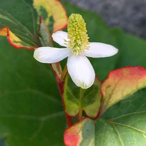 庭の観賞用ドクダミ 葉っぱのコントラストが印象的 👍🏻ෆ ̖́- 夕方撮ったら花弁もポッ と色づき一輪でも葉っぱに負けてないような気がする 🤍♪̊̈💛♪̊̈❤️♪̆̈💚♪̊̈ 【追記】 O Kiさんからカメレオンと名前を教えて貰いましたので調べたら五色ドクダミ・カメレオンってありました°・*:.。.☆ 🏷タグに追加するね😃👌✨