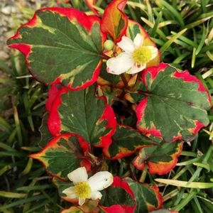斑入りドクダミさん 最近 可愛い花が咲きました🤍 葉の色は、 赤色❤️オレンジ🧡 黄色💛緑色💚黄緑色💚 とても綺麗なんです💕💕 (ღ*ˇ ˇ*)。o♡💖