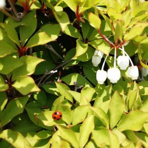 ヤブサンザシの若い実。綺麗な壺型🏺 右下には真っ赤な虫😃ヨコバイの仲間の幼虫でしょう。