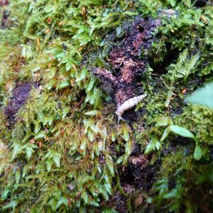朽ち木をホジホジしながら、一心不乱に食べてるキマワリ。 を撮ってから、奥にあるキノコに気づいて。 帰ってから写真見て、自分の目の節穴にガックリ… さがしてた粘菌やん…(´._.`)
