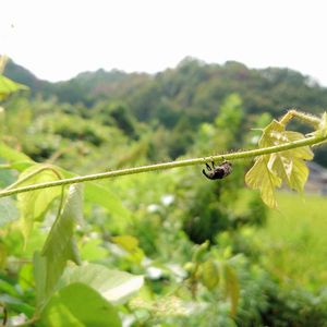 グズの蔓で綱渡り中の オジロアシナガゾウムシ 暑さも少し和らいで、虫たちが出てきた気がする(๑´`๑)♡