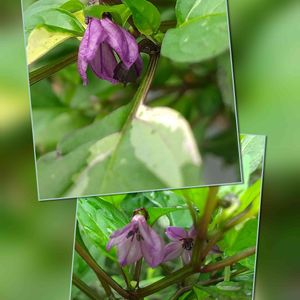 花友さんから種から育てたカリコちゃんを頂きました💜 この子は斑入り葉が涼しげな観賞用の唐辛子です🌶 ツヤツヤの黒い実も可愛いくて大好き🖤⋆͛*͛ 私も来年は種から育てたい❣️💪