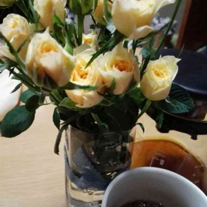 産直でみっけ お連れしました ミニバラ 優しい色合い ふんわり 私の性格とは違うね(笑)