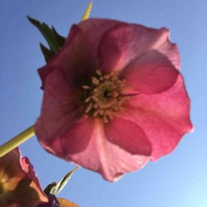 おはようございます😃 クリスマスローズ 下ばかり向いて恥ずかしがり屋💦 這いつくばって📸もなんだし 自撮りカメラに切替えてパチっ 今日は青空 でも風が冷たい😖