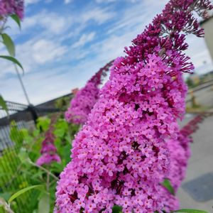ブッドレア(バタフライブッシュ)でいいのでしょうか?教えてください 畑に植えてありました 柵があったので遠くからの撮影です ゴマノハグサ科 フジウツギ属 和名 フサフジウツギ(房藤空木) 花言葉「恋の予感」「あなたを慕う」 由来は 芳香に誘われてチョウがひらひらと現れる様子に由来するといいます 余談ですが 昨日この花を見ていたらそばにおじいさんがおられたので花の名前を尋ねてみました ものすごく親切な方で植物図鑑に確か載っていたと思うと言って家から分厚い植物図鑑を持ってきて調べてくださいました 20分くらい一生懸命探してくださいましたが結局見つからず とても植物好きの方で家の庭にある珍しい植物を見せてくださいました 昔山歩きをなさったことがあって高山植物もありました 花の見頃の時に見に行く約束をして帰って来ました さっちゃんさんの🏷️白い水曜日♡に参加します