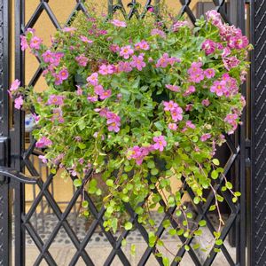 玄関に新しいハンギングをつくりました。ジプリフィラは可憐でかわいいです。
