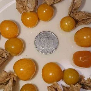 食べるホウズキ 1円硬貨と比べると 小さいですね🎵