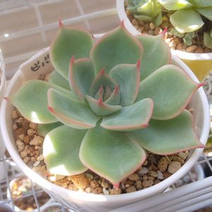 「ピンククリスタル」 Pink crystal ベンケイソウ科 エケベリア属 夏越しできて あとはピンク色になるの待つだけ。