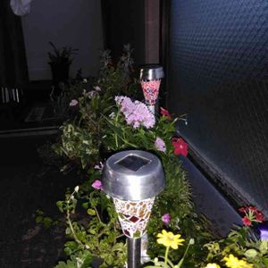ソーラースタンド 点灯!‼💜 分かるかな? 向こうのローズ色♥ (=^・・^=) 手前は、フラッシュでちょっと上手く色がでてないです…💧