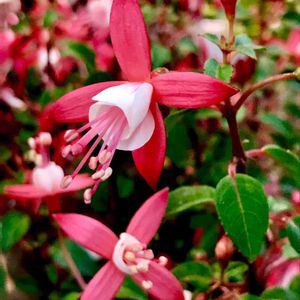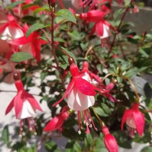 こんにちは👋😃 フクシア ルージュブラン 開花しました。 花の形が、愛らしいですね。