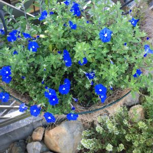 💙アメリカンブルー💙 エボルブルス ブルーシェル 3年目の葉っぱモフモフちゃん💚💙💚 大株になっちゃって、切り戻し✂️が追いつかない💦 挿木した若い株のほうが綺麗なお花を咲かせてる😅