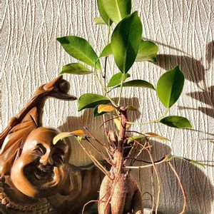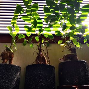 先週に続き、西側🪟組のガジュマル。 その2. (胡蝶蘭風仕立ての) 通称 こちょまる。 枝垂れさせていると不思議な事に、葉だけは重力に逆らって上を向くようになりました( ̄∇ ̄*) 毎年、新葉の葉切りはしていますが、2019年の4月に迎え入れてから一度も枝の剪定はした事がありません。 実に穏やかな生長です。 このコから自身のガジュマルライフが始まりました😊