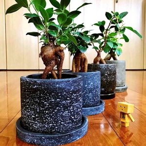 連投失礼します😅 先週picしたガジュマル2鉢も植え替えました⤴︎⤴︎ 家を探すと、ちょうどお揃いの鉢があったので良かったです♬ 今回は乾燥具合が分かりやすいように、バークチップはやめて赤玉細粒を敷きました😀 改めて紹介します。 先頭 ガジュマリーナ 二番手 あふりょまる 三番手 コチョマル 四番手 みちゅまる です(ΦωΦ)✨ 来年の植え替えまでには、この先行きの見えない現状が完全に終息して、好きな時に自作鉢を作り… 引越しさせたいと思っています😊