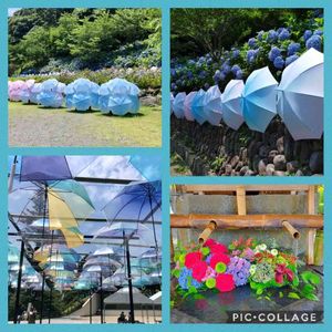 娘がツーリング🏍💨で 県内の法多山尊永寺へ✨ 紫陽花に見立てたパラソル☂️が ∧_∧ (๑♡∀♡) カワイイ♪ 。:゚*〇☆〇*゚:。: