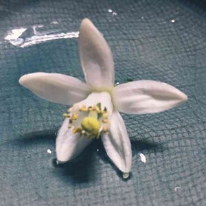 散歩途中に蜜柑の花が咲いていました。 とてもいい香り♡ 落花を持ち帰ったら、お皿の上で香っています✨