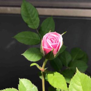 鉢植えの薔薇が開きかけています🎶 小さく可愛らしい蕾💕おやゆび姫が住んでいそう✨✨✨^_^