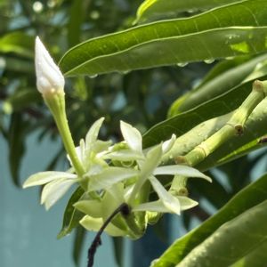 花びらは9〜11片らしい 正確には切れてるだけで花びらじゃない?お花ってほんと面白い♡ オザキフラワーパークさんのジャスミンの説明が分かりやすかったので↓↓↓ ソケイ(ジャスミン)の特徴 「ジャスミン」と名がつく植物はたくさんあります。 園芸店で定番として入荷するのは、黄色のお花の「カロライナジャスミン」、白花の「ハゴロモジャスミン」、「マダガスカルジャスミン」、ジャスミンティーに使われる「アラビアンジャスミン(マツリカジャスミン)」などなど。 いずれも甘い香りが特徴のつる植物(または半つる)です。 食用として使われているのは「アラビアンジャスミン(マツリカジャスミン)」(モクセイ科ソケイ属)で、お茶やお水に入れて、ジャスミンティーや、ピカケウォーター、また香料の原料に使われたりなど、いろいろと楽しまれています。 黄色の「カロライナジャスミン」(ゲルセミウム科ゲルセミウム属)は、「ハゴロモジャスミン」「アラビアンジャスミン(マツリカジャスミン)」とは科属ともに異なります。毒性があるため食用にはできません。 「マダガスカルジャスミン」(キョウチクトウ科シタキソウ属)もジャスミンという名前がついていますが、ジャスミンのような甘い香りがするからとの理由でつけられた花名なだけで、ジャスミンとは異なる別の植物です。こちらも有毒植物なので食用にはできません。 また、「スタージャスミン」という名前で出回る植物もソケイ(ジャスミン)を小さくしたような白花で、見た目はジャスミンとよく似ていますが、キョウチクトウ科テイカカズラ属の常緑性つる性低木で、ソケイ(ジャスミン)=モクセイ科ソケイ属とは異なる別の植物です。こちらも有毒植物なので食用にはできません。 「ハゴロモジャスミン」(モクセイ科ソケイ属)は、アラビアンジャスミン(マツリカジャスミン)と同じ科属ですが、観賞用です。食用には適しません。 上記以外で、モクセイ科ソケイ属のその他のジャスミンは、総称して「ソケイ(キソケイまたはオオシロソケイまたはジャスミンなど)」の名前でいろいろと流通します。 よく出回っているのは「エンジェルウィングジャスミン」「ホワイトプリンセス」「ロイヤルジャスミン」などの園芸種があります。 いずれも観賞用です。食用には適しません。