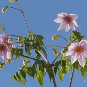 皇帝ダリア おはようございます。 ちょっと☔が落ちて今は☁️の朝です。いつもの日課の花たちの見回りタイム😊 今朝はご覧の4種類の皇帝ダリアが咲いていました。