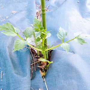 小さい方の畑に植えていた皇帝ダリア🌸 枯れたと思っていたのに、 防草シートの下から新しい芽が🌱🌱🌱 皇帝ダリアって、脇から芽が出るのね⤴️ 急遽防草シートを貼っていない 大きい方の畑に3本とも移動しました🌲
