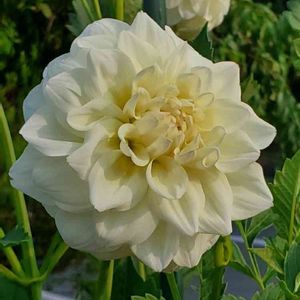 これからお天気が崩れるようです😕 なので写真では晴天を…☀️ 皇帝ダリア(白)です🌿 淡い紫しか知りませんでした😮 背が高すぎて撮るも一苦労😅