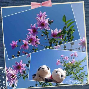 用事でちょっくら出かけてその帰り道。 畑道をケッタ(自転車)で走っていたら… 背の高い皇帝ダリアが風に吹かれて花びらがヒラヒラしていました。 雲ひとつない青空に紫ががったピンクの花がきれいに咲いてました。 (ФωФ)空気が乾燥してるすけ火の元に気ぃつけんばねぇね。