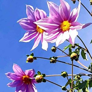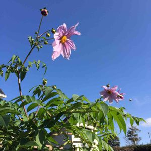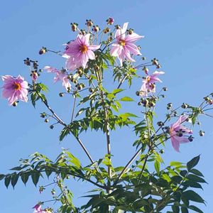 皇帝ダリア🌸✨ 高い高いところで咲く 皇帝ダリア🌸✨ 風に吹かれて🌀ゆらゆら~〜 写真が撮りにくかったですが… 青い空と太陽で輝く皇帝ダリア🌸✨ とても美しいのでパシャ✨っと 頑張りました😄💓🎶