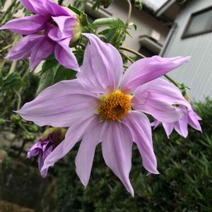 宮崎からお嫁入りした皇帝ダリア🌸🌿です 台風💨で倒れても起き上がり花を咲かせてくれました😊