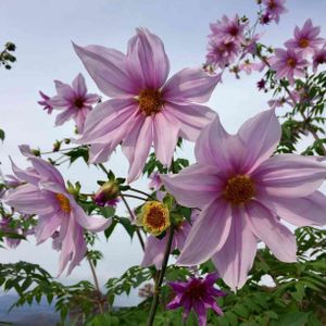 ❇️皇帝ダリア❇️ そろそろ 夕暮れに染まる空と 職場に咲く皇帝ダリア🏵️ 今日はお仕事終了(*^^*) 早出だったので 明るいうちに帰れます🌆