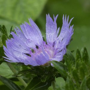 「ストケシア💙」 早朝より強い雨☔が降り続いています。そんな中、庭に出てみたら、ストケシアがひとつ咲き始めていました。 🏷青い花で梅雨景色2023 🏷咲き始めのお花たち