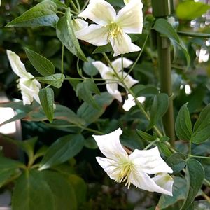 クレマチス エンテル🌱 クレマチスのツルがどんどん伸びて🌱今朝咲いていました😊💞小ぶりの花だけど可愛らしくて微笑ましいです🥰💞