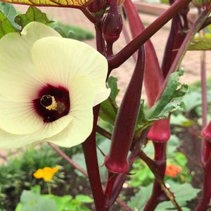 可愛いオクラの花を見つけたと思ったら 何と赤いオクラでした。 一般的に売っているのをまだ見た事がありませんが栄養ありそうですね( ◠‿◠ )