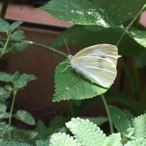 ひらひら飛んできて止まりました これってモンシロチョウ? 葉っぱに米ぬかが💦