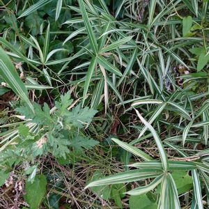 下 昨日投稿して縞笹と 教えていただきました。 鉢に植え替えました。 上左 6月28日ホウライチクでは 無さそうです。 上右 12月17日枯れたかな?紅葉? 追記 上 2020年9月にオロシマチクと 教えていただきました。