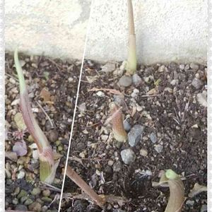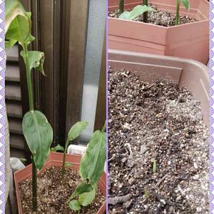 やっと出たー!茗荷2号も3号もめっちゃ伸びてるのに、なぜか茗荷1号だけ発芽してなくて不安でした。今日ようやく発芽。これで安心❤️今年もたーくさん茗荷食べられる♪