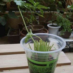 三つ葉の消費量に成長が追いつかないのか、環境が合わないのか、何度やっても三つ葉の鉢が貧弱になってしまうので、成長著しかった水耕に切り替え。再生栽培でもやっぱりこっちのほうが元気みたい。