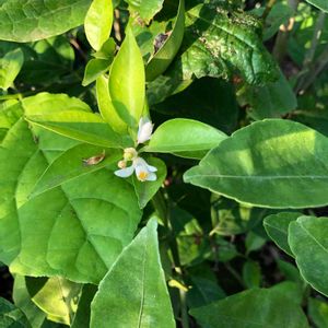 すだちの花が咲きました✨ 小さな実がいくつかついています。 楽しみ🧚