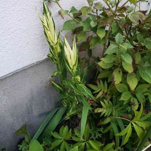 蘭屋さんで買った斑入りミョウガ まだ、ツボミは見てない 斑入りのミョウガでそうめん食べれるかなぁ🐽